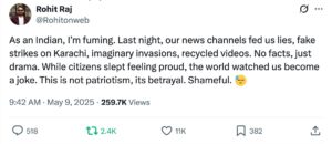 Influential Indian voices openly criticized the media’s conduct such as Prof. Ashok Swain wrote on his X-account, “Indian media is the worst enemy of people of India.”
