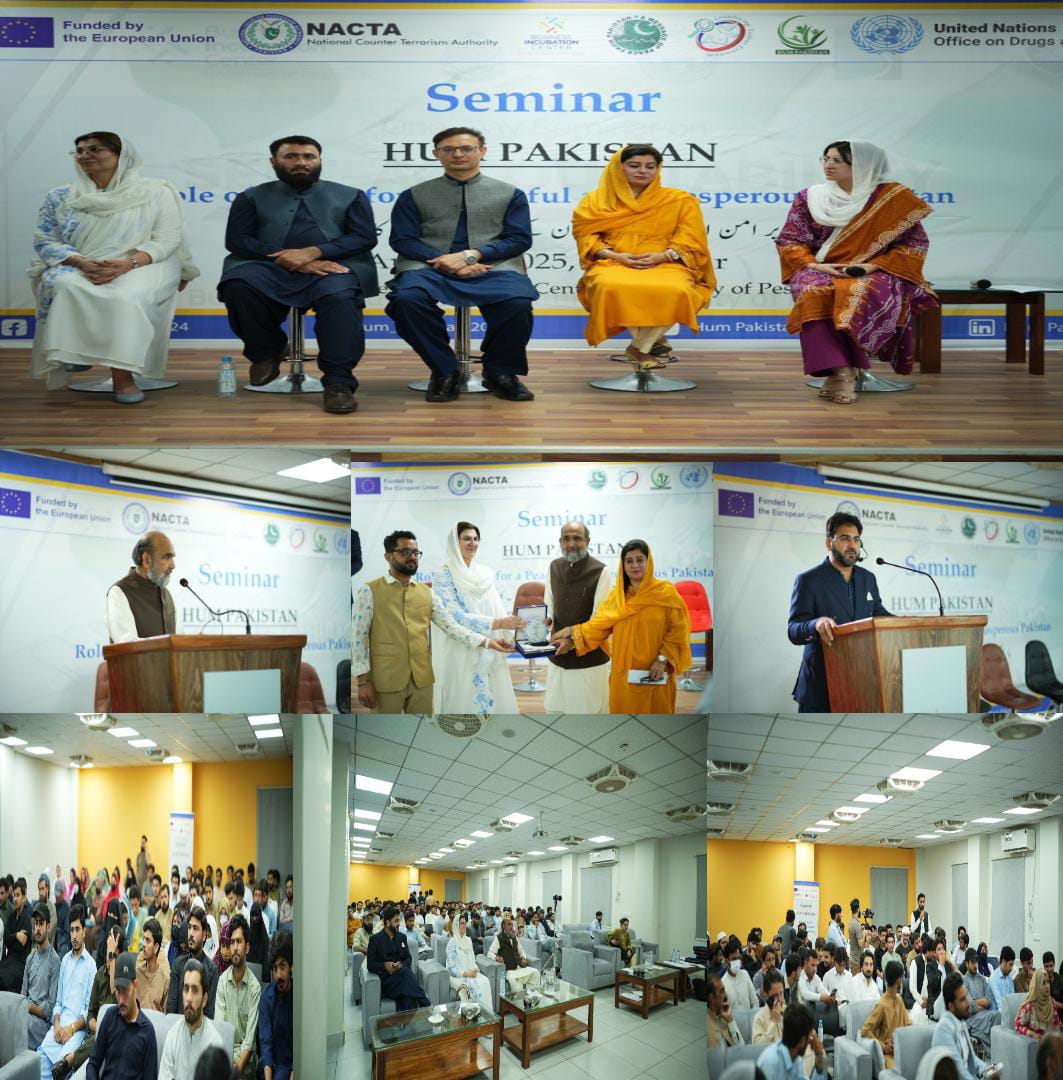 In a powerful gathering held at the Business Incubation Centre, University of Peshawar, young voices and peacebuilder from diverse segments of the society came together under one roof to reimagine the future of Pakistan’s Newly Merged Districts (NMDs). The seminar, titled “The Role of Youth for a Peaceful and Prosperous Pakistan,” was organized by CHEF International under its Hum Pakistan initiative, held in collaboration with UNODC Pakistan and NACTA, with generous support from the European Union.